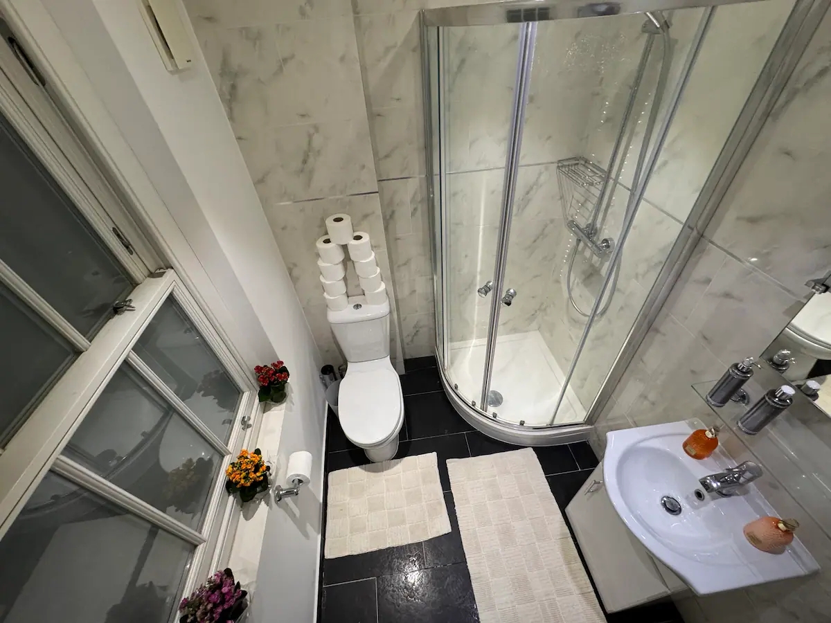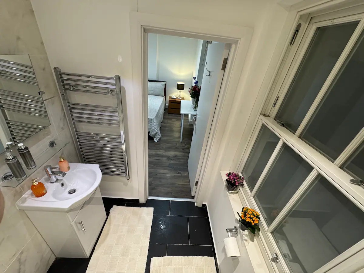 Experience a delightful stay with your whole family in our charming 2-bedroom en-suite apartment located in the vibrant Camden Town. Each bedroom comes with its own private bathroom, ensuring maximum comfort and privacy for all guests. The modern kitchen is fully equipped, perfect for preparing family meals. Enjoy the lively atmosphere of Camden with its unique shops, eateries, and attractions just a short walk away. Ideal for a memorable and enjoyable family getaway.