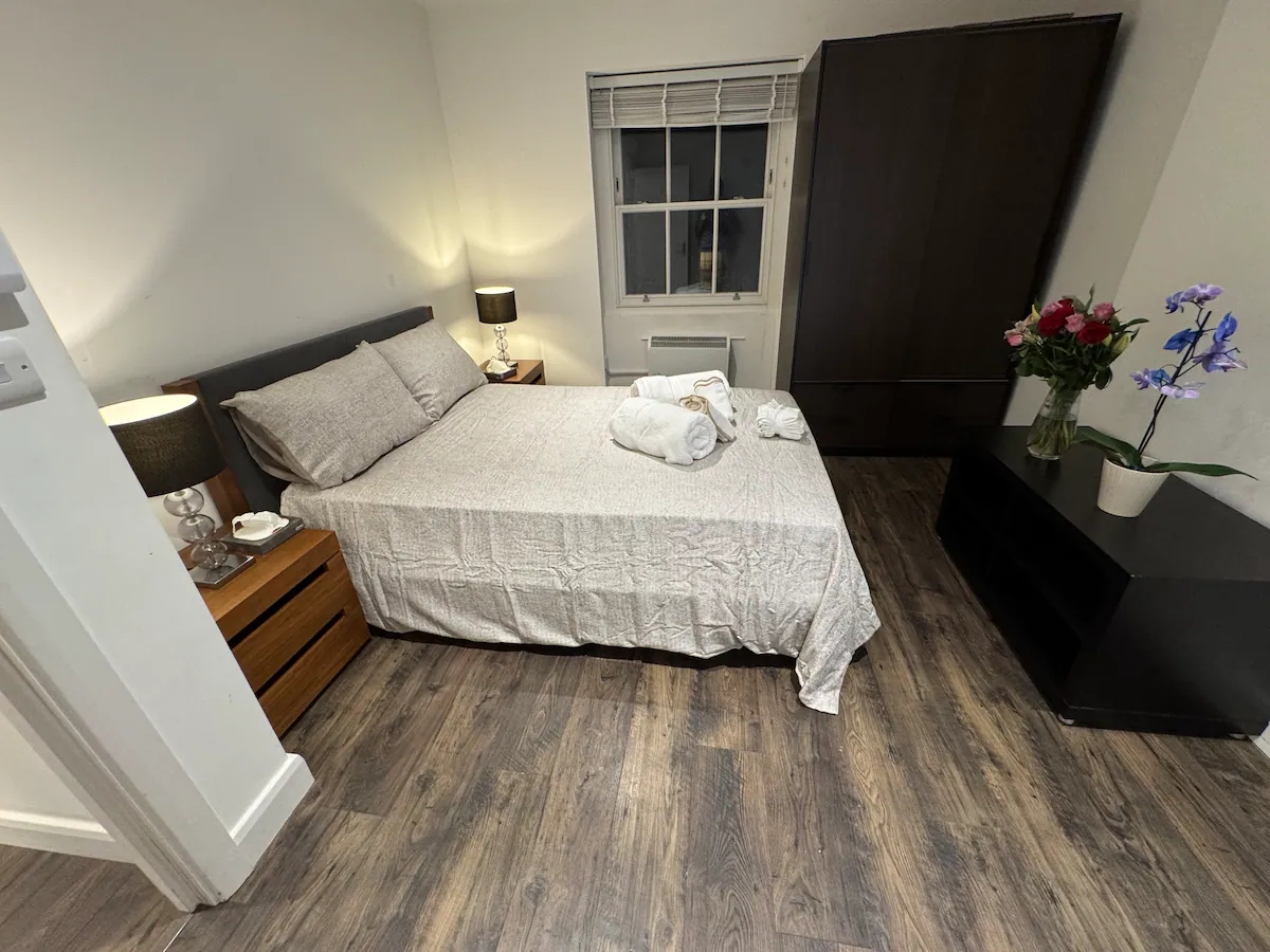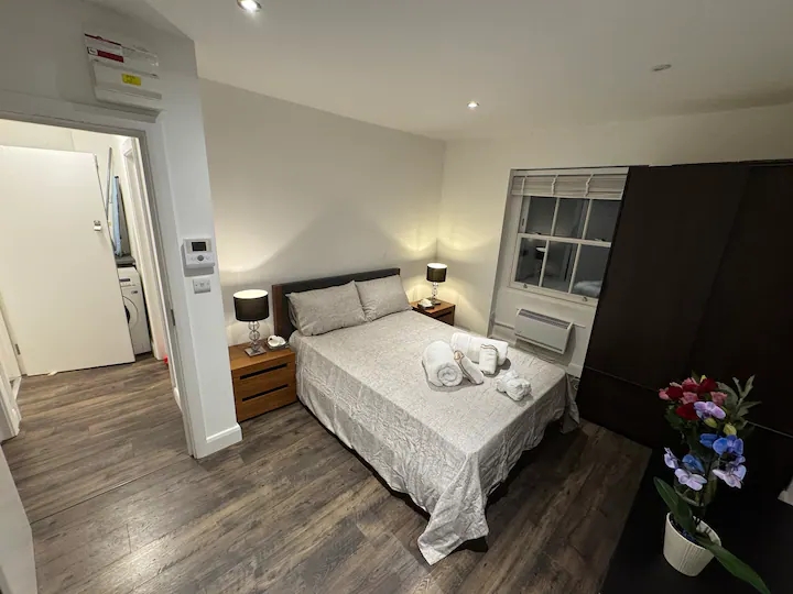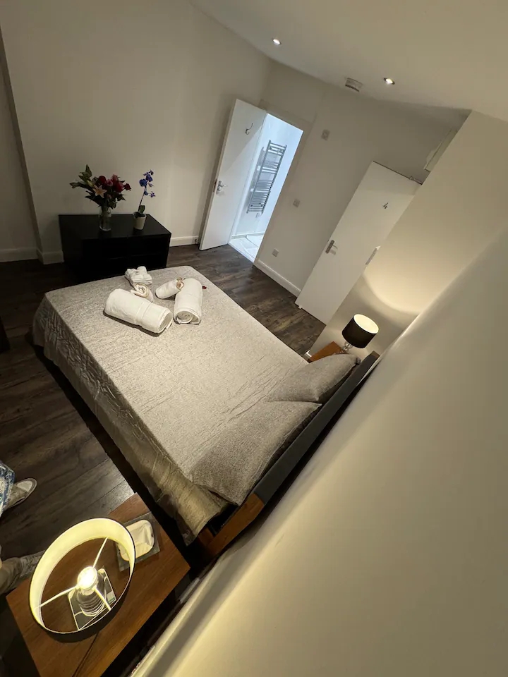 Experience a delightful stay with your whole family in our charming 2-bedroom en-suite apartment located in the vibrant Camden Town. Each bedroom comes with its own private bathroom, ensuring maximum comfort and privacy for all guests. The modern kitchen is fully equipped, perfect for preparing family meals. Enjoy the lively atmosphere of Camden with its unique shops, eateries, and attractions just a short walk away. Ideal for a memorable and enjoyable family getaway.