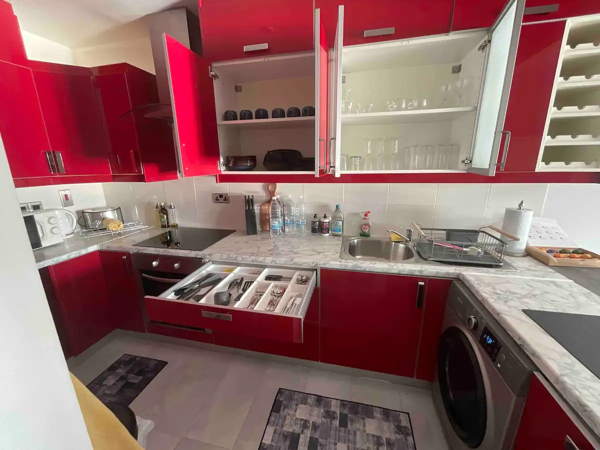 When you enter the apartment, there is a large balcony right in front of you. The magnificent view you will see from the balcony will surprise you. The Thames River will surround you with its peace, and you will not even notice how time passes.
