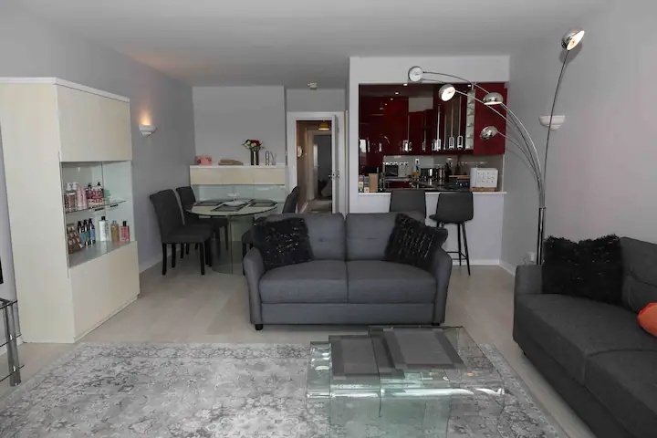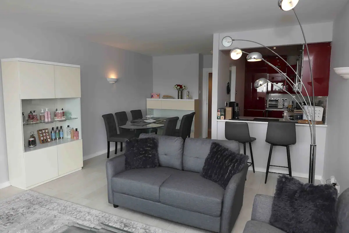 When you enter the apartment, there is a large balcony right in front of you. The magnificent view you will see from the balcony will surprise you. The Thames River will surround you with its peace, and you will not even notice how time passes.