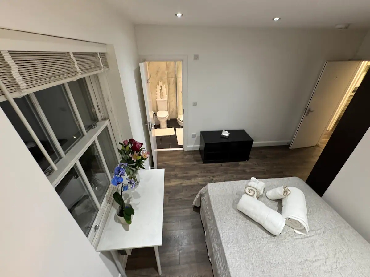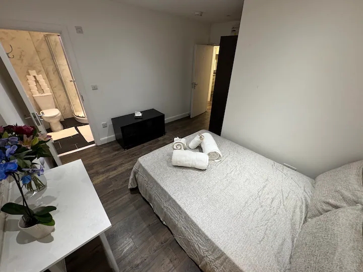 Experience a delightful stay with your whole family in our charming 2-bedroom en-suite apartment located in the vibrant Camden Town. Each bedroom comes with its own private bathroom, ensuring maximum comfort and privacy for all guests. The modern kitchen is fully equipped, perfect for preparing family meals. Enjoy the lively atmosphere of Camden with its unique shops, eateries, and attractions just a short walk away. Ideal for a memorable and enjoyable family getaway.